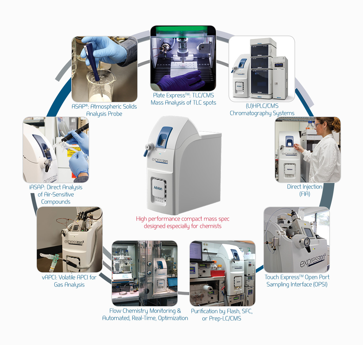 Obstajata dva modela. ExpressionS je masni detektor z razmerjem m/z 10-1200 in je primeren za spremljanje reakcij v šaržni in pretočni kemiji ter za identifikacijo spojin in nečistoč. ExpressionL z razmerjem m/z 10-2000 je primeren tako za kemijske kot biokemijske aplikacije. Metodi ionizacije sta elektrosprej ionizacija (ESI) in kemijska ionizacija pri atmosferskem tlaku (APCI). Na voljo so različne inovativne tehnike vnosa vzorca, od direktne ASAP sonde (direct analysis probe), Plate Express sistema za branje TLC plošč do povezave detektorja na HPLC, flash ali preparativni kromatografski sistem. Programska oprema je preprosta za uporabo in vključuje vse module za detekcijo in kvantifikacijo spojin.
